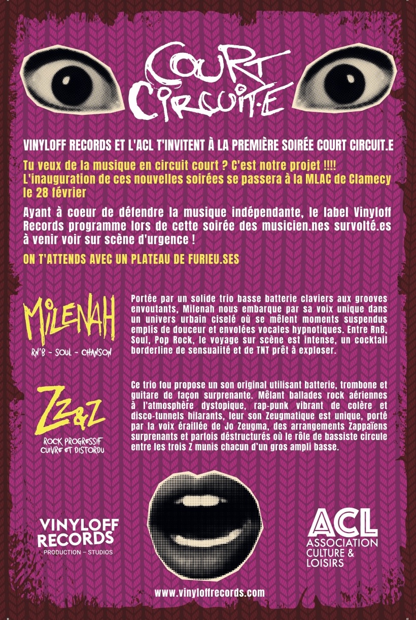 Fort du succès de la première soirée co-organisée avec le label associatif Asquinois Vinyloff Records, on remet ça avec la première édition des soirées Court Circuit.e, la première d’une série mettant en avant des artiste locaux.